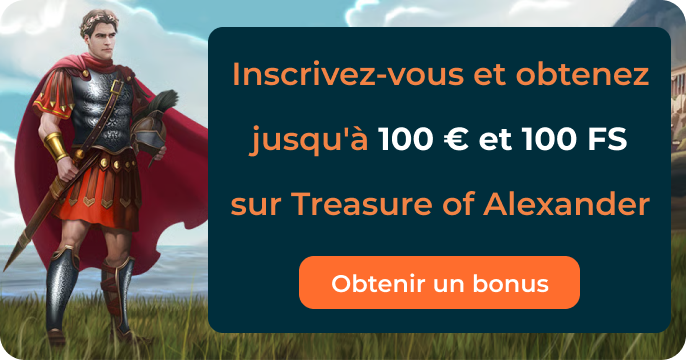 Profitez de notre alexander casino bonus sans dépôt de 20 tours gratuits à l'inscription, sans condition de dépôt. Ensuite, bénéficiez de notre bonus de bienvenue : 100€ plus 100 tours gratuits sur votre premier dépôt. Conditions de mise : 35x le montant du bonus, contribution des slots : 100%.